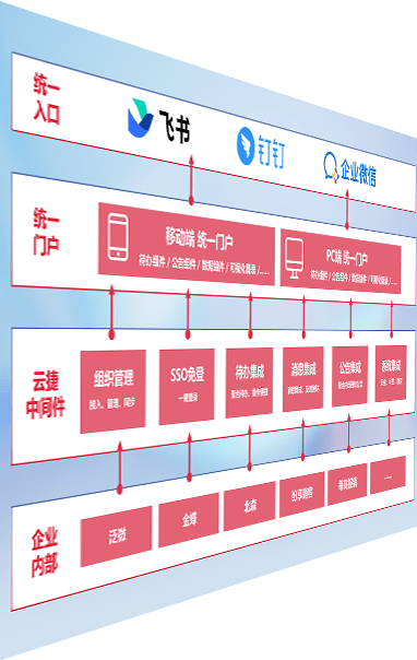 对协作平台提供支持服务,,,支持企业应用与协作平台对接,,包含组织同步、、消息集成、、待办集成等。。支持目前主流的协作平台:钉钉、、、、企微和飞书。。。。
