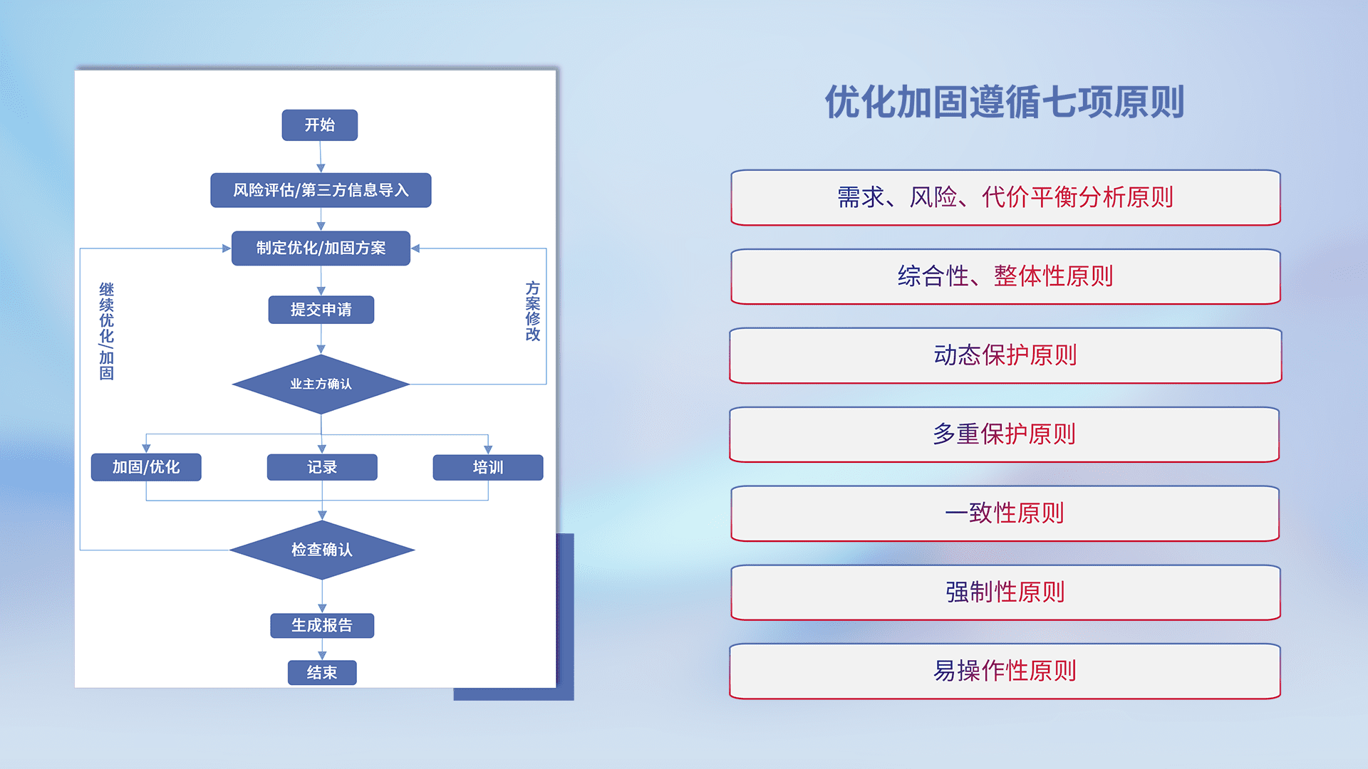 最大程度利用现有资产,,对评估发现的问题进行封堵与整改,,,,防止漏洞被利用,,,,提升整体网络安全性,,为客户带来高标准的优化加固服务。。