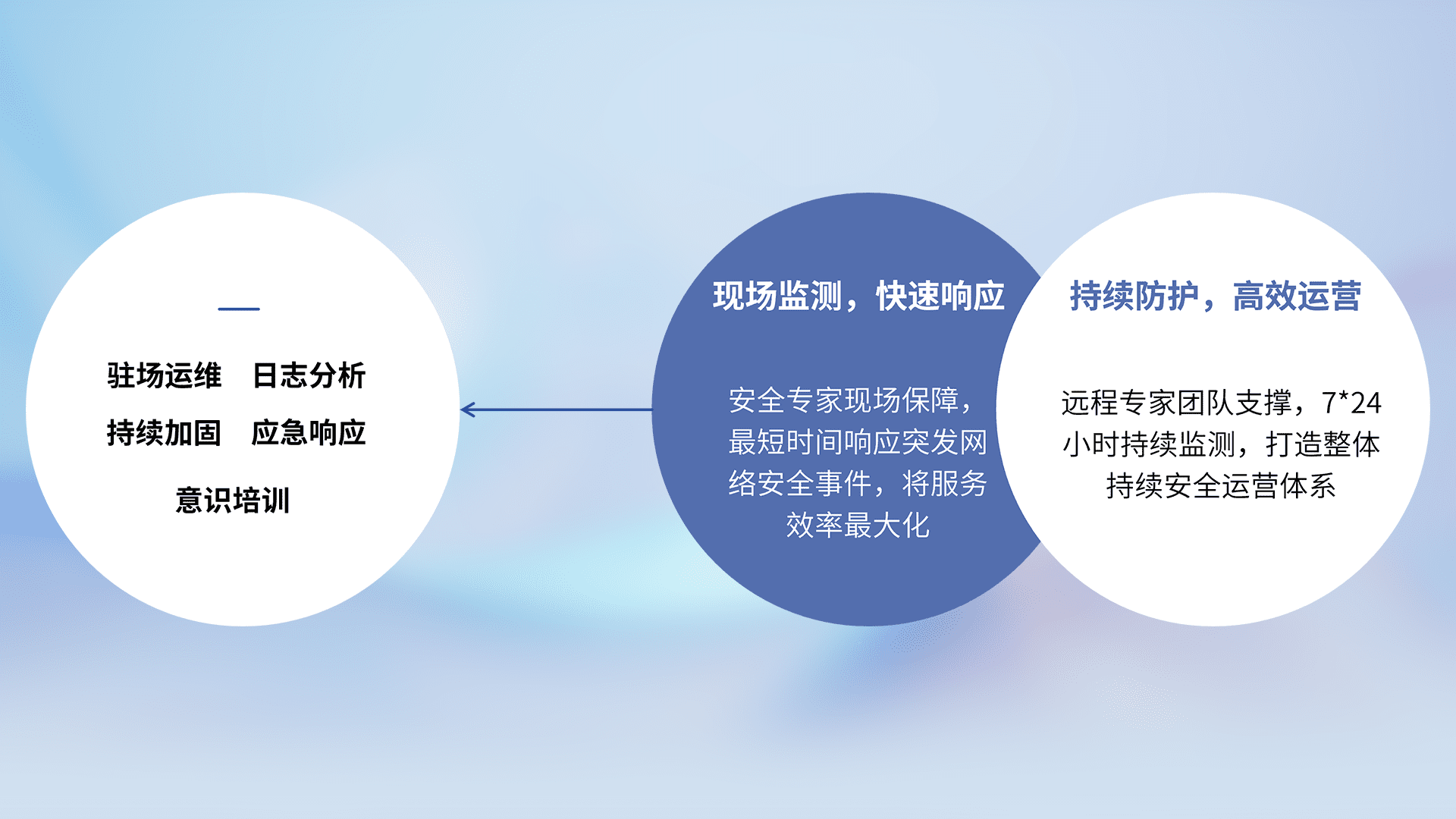 针对客户行业特性,,提供专属的一站式安全管理服务,,帮助客户全面感知网络空间威胁,,,,通过安全专家的线上、、、线下防护支持,,实现风险闭环,,,,将安全保障常态化,,,为客户打造常态化安全运维运营服务。。。。